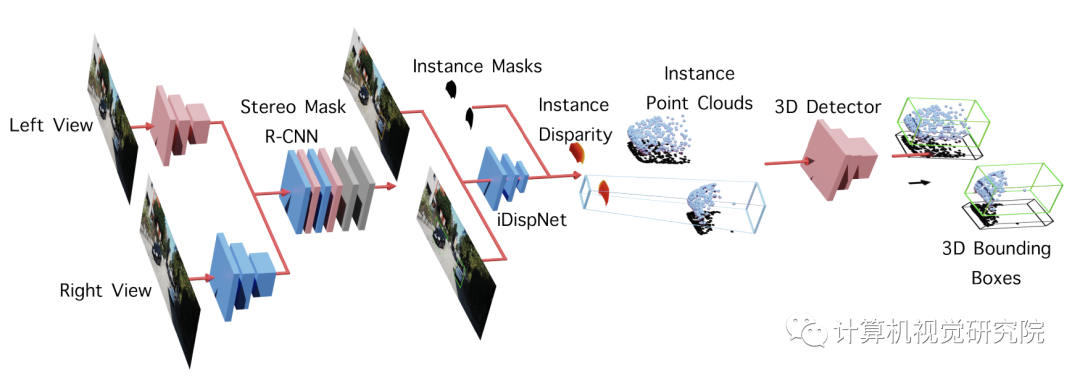 也有研究是做双目深度估计的,相比于单目相机其深度信息有可数学推导的实际意义,但碍于baseline大小,深度信息也做不到太远。今年CVPR我们也有一篇相关研究,利用shape的先验知识来辅助做双目3D检测,在相关benchmark上取得了不错的结果,但说实话离落地有一定距离,感兴趣的可见论文(https://arxiv.org/pdf/2004.03572.pdf):