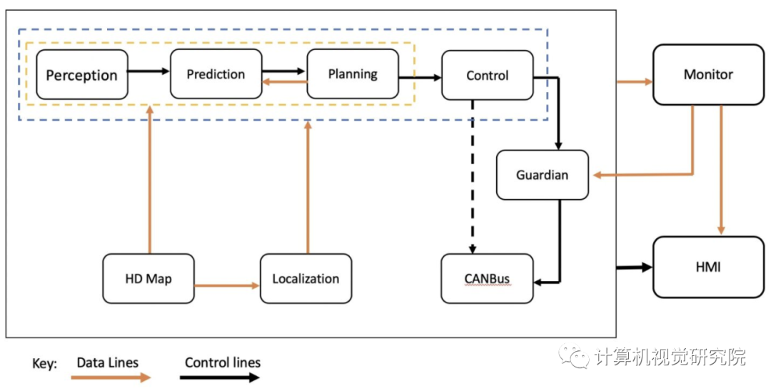 以百度Apollo的软件架构为例,自动驾驶系统核心需要解决几个问题: