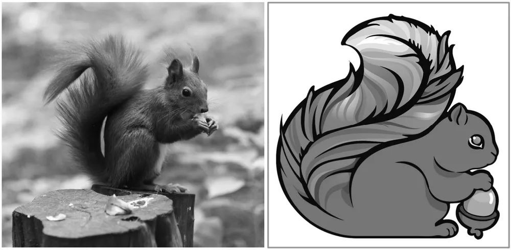 图 1-3:左侧:柏林的红松鼠拥有可爱的耳朵;右侧:Flink 的松鼠 logo 拥有可爱的尾巴,尾巴的颜色与 Apache 软件基金会的 logo 颜色相呼应。这是一只 Apache 风格的松鼠!