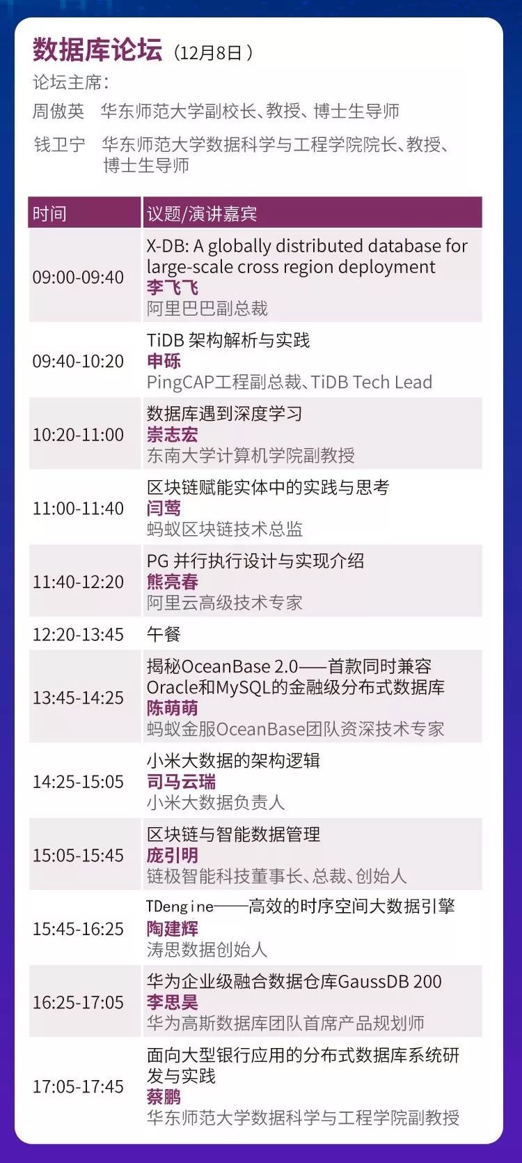本次大会议程紧凑,12 月 6 日为 Keynote(全天),12 月 7-8 日为技术专题与行业分论坛。嘉宾演讲时间较长,中间没有设置单独的场歇时间,请注意在大会前保证充足睡眠,并提前到场,以免错过大会精彩演讲。