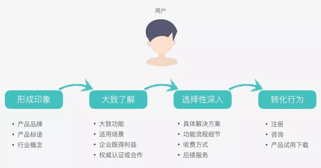 用户在前面所提到的场景下来到网站,肯定是有他们要达成的目的。比如通过搜索关键词来到网站,会需要强相关的产品内容和更详细的资料,而通过运营销售渠道进入,则可能更需要活动承诺的兑现。