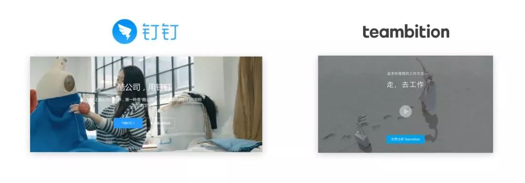 这两家都是做工作协同工具的。但是两者的气质非常不同。钉钉现在面对的是用户市场是中小型创业团队,他们与传统行业很不一样,充满年轻和活力,所以钉钉的slogan是酷公司用钉钉。并且配套短视频也是表现独特的工作种类等等。