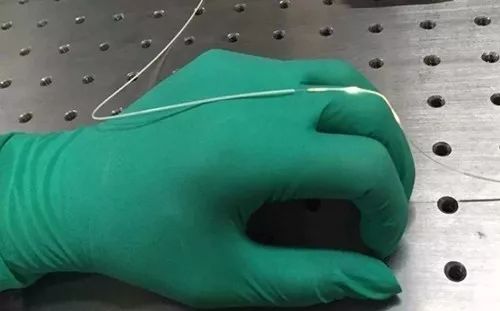 为了测试这个硅胶光纤的性能,研究人员通过环氧树脂将纤维粘在橡胶手套上,然后弯曲和伸展手指来监测它。在这一过程中,他们测量了作用于纤维的应变为36%,与其他使用电子传感器测量的结果一致。