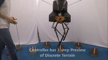 跳板的问题也对脚的放置有严格的限制,当然在现实世界中,这些跳板也可能会倒塌(在不久的将来我们将会解决这个问题)。此外,机器人还必须在其他物理约束下工作,如电机转矩限制和摩擦(机器人不能滑倒)。所有这些约束相互作用,使得控制设计过程变得非常重要。