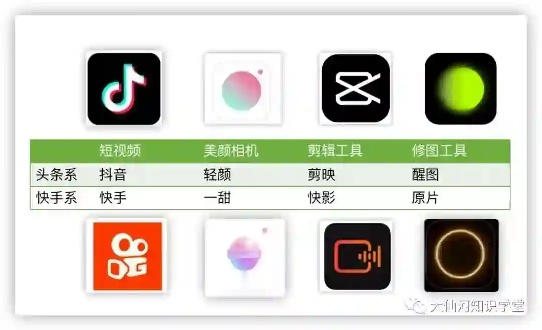 互联网的竞争如此激烈,原则上在占用用户时间的维度上大家都是竞品,人们知道字节的轻颜、剪映、醒图,但是很少人知道快手也有对标的一甜、快影和原片。