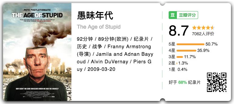 我想这也是《愚昧年代》想讽刺之处,大家都知道拯救地球刻不容缓,保护环境责无旁贷,然而一旦触及自己,每个人都有一套自圆其说的托词。