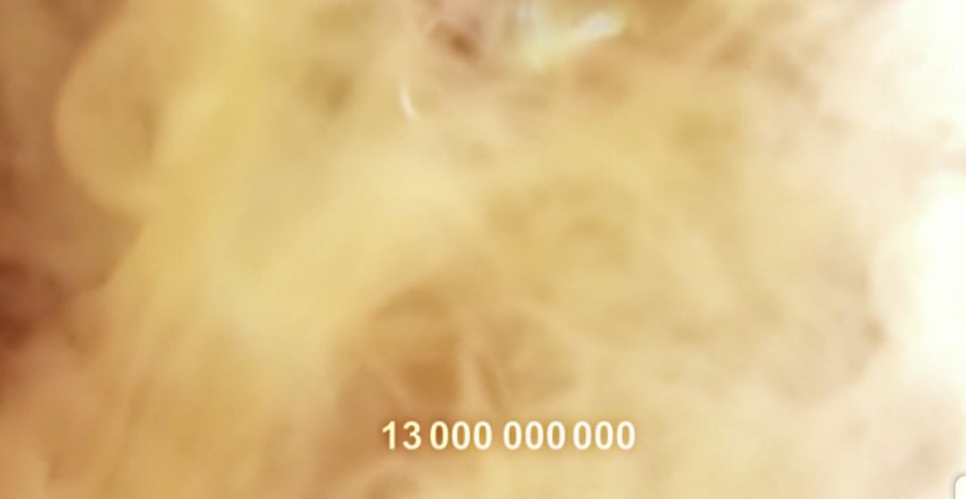 影片从130亿年前的宇宙大爆炸那一个瞬间开始,伴随着画面下方时间数字的快速更迭,将星系的形成、地球和生命的诞生、人类的进化……如时间旅行般回放了一遍……