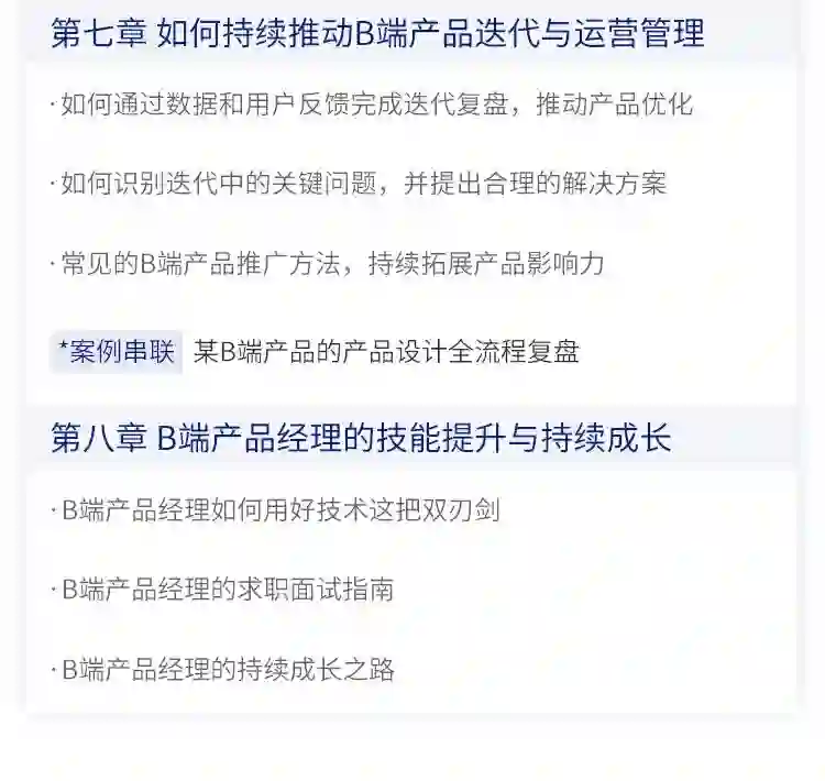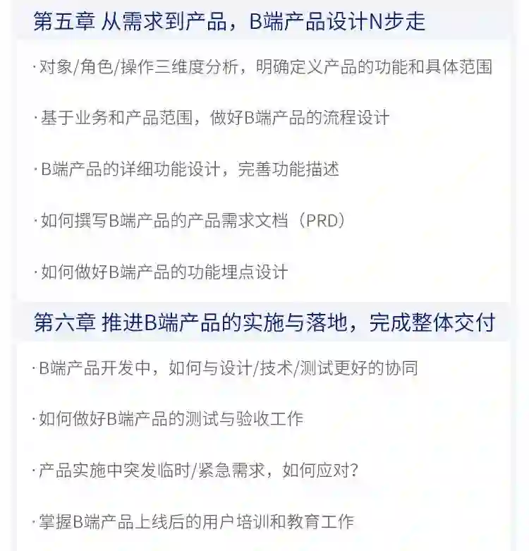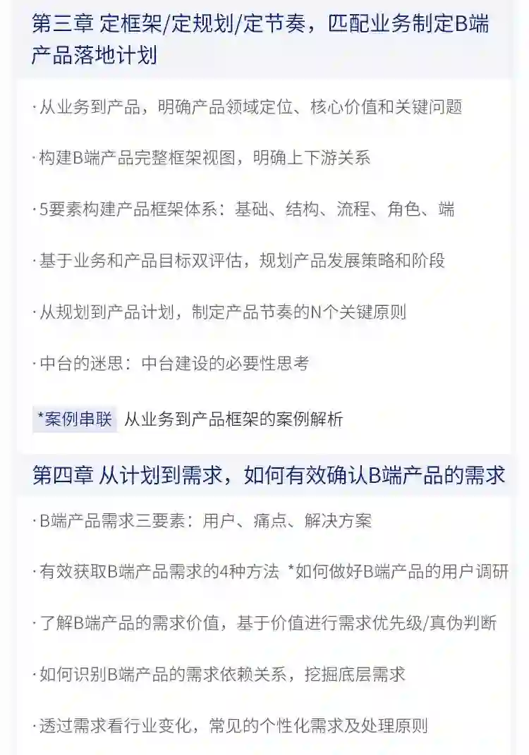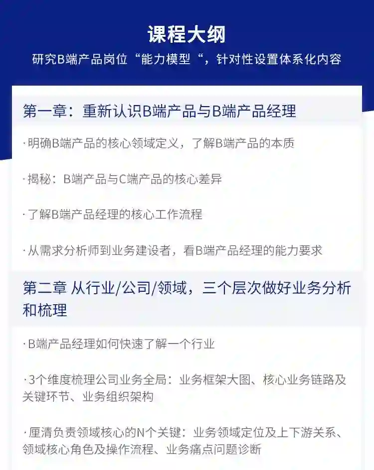 除此之外,B端产品经理除了掌握核心工作技能外,还需要具备极强的抽象能力、沟通协作、技术理解力,这些我们的课程中也给到了可以落地的方法。详细看大纲感受一下。