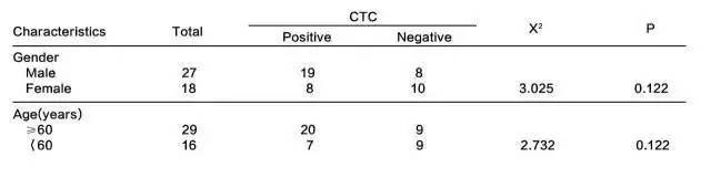 表一:胃癌患者不同临床表征与CTCs阳性率的关联性(载录自2014年中国肿瘤临床杂志)