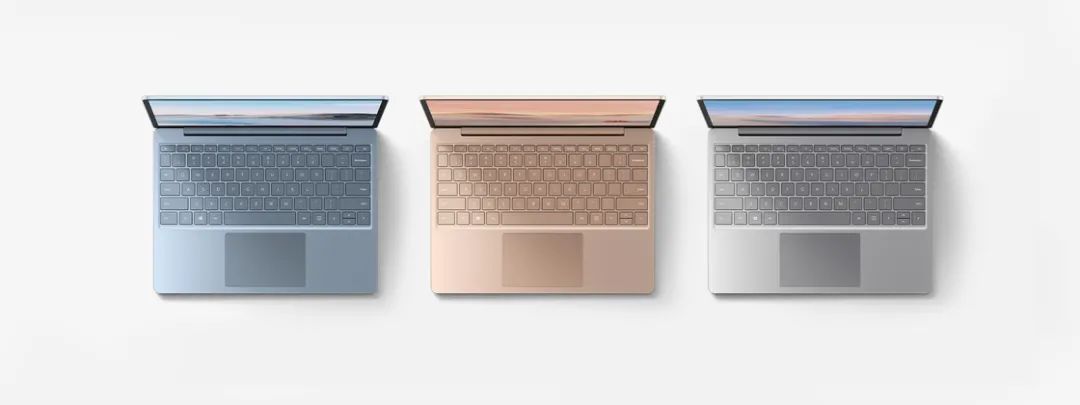 Surface Laptop Go 分为三种版本,入门级别的机器采用了 4GB 的运存、64GB 的 eMMC 的存储,且不带指纹电源键,售价为 550 美元。中档配置和高阶配置则均支持指纹电源键,配置上分别为 8GB 运存、128GB 的 SSD 存储以及 8GB 的运存和 256 GB 的 SSD 存储,售价分别为 700 美元和 900 美元。机身颜色上可以选择冰晶蓝、砂岩金以及亮铂金(入门版仅有该配色)。