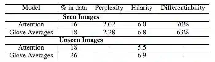 生成表情包的质量很难自动评估。他们使用混淆度作为指标来评估和调整他们的模型,混淆度与 BLEU(Bilingual Evaluation understudy)分数高度相关。他们的定量评估则是由人类测试员完成。人类测试员需要去辨别表情包是不是生成的,或者评估一下表情包的欢乐程度,毕竟表情包的灵魂就是有趣。