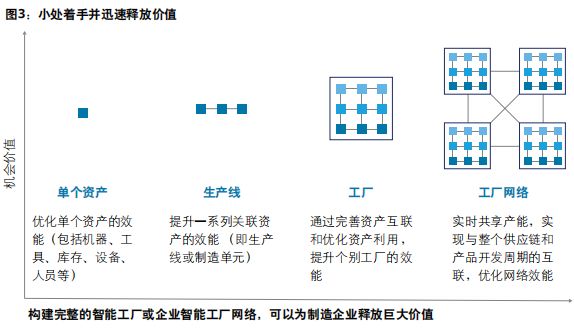 事实上,从小处着手,在可控环境下检测理念,并推广所获得的经验,可达到更加理想的效果。一旦实践成功,便可将解决方案推广到其他资产、生产线和工厂,从而有机会创造巨大价值(图3)。