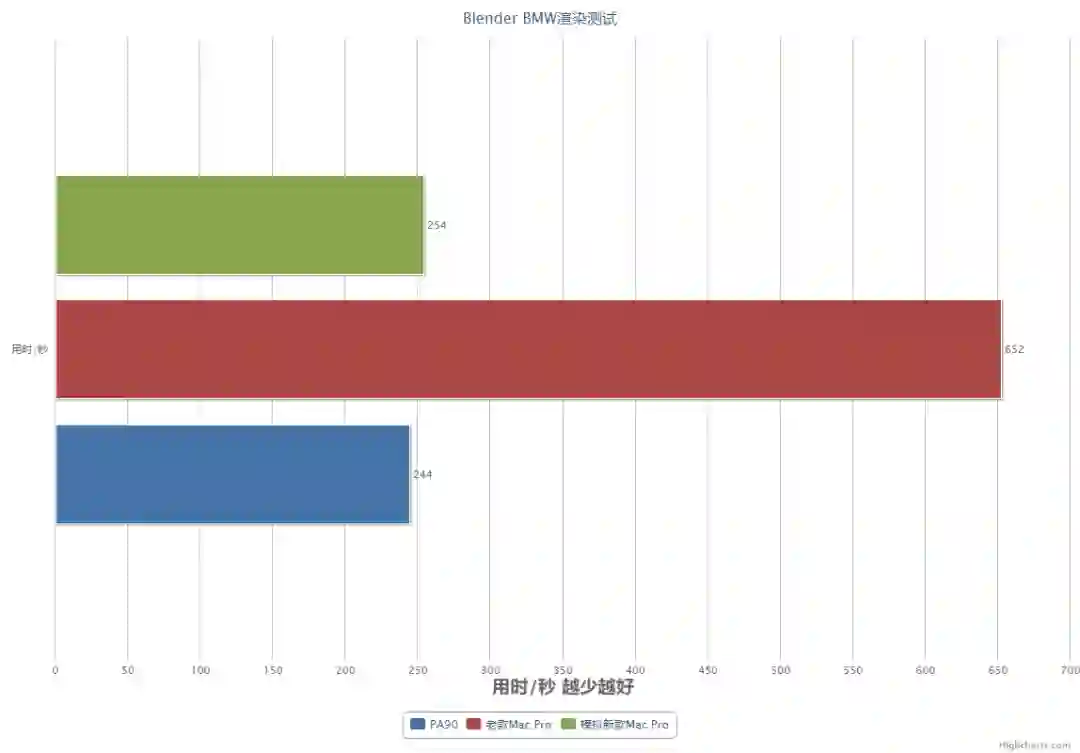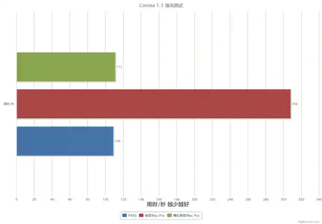 和理论测试相当,PA90 比起老款 Mac Pro 节省了近三倍的渲染用时。
