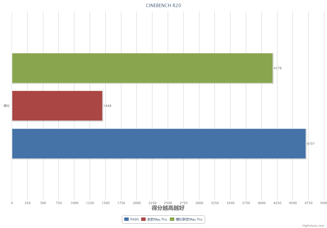 通过测试,可以看到 CPU 理论性能测试上,PA90 比老款 Mac Pro 强了约 325%,比模拟的新款 Mac Pro 还高 11.3%。