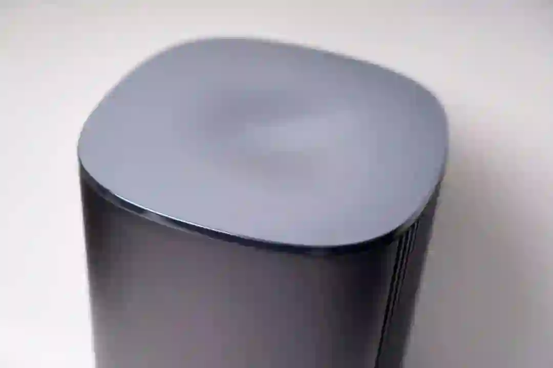 PA90 与圆柱形的 Mac 不同,属于圆角正方形设计,显然也难以避免被人称为”垃圾桶“,外壳采用了磨砂金属材质,阳极氧化后的 PA90 抚摸起来也更细腻舒服一些,而老款 Mac Pro 采用的是亮面金属材质,对于指纹和刮痕的容忍程度就不是很高。