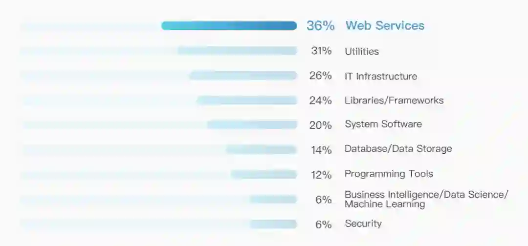 不同于“人人皆可学”的 Python,Go 并不是业余爱好者的大众化编程语言,它应用于更专业化的场景:Web 服务、工具类应用、IT 基础设施、各类框架/库以及系统软件等等。