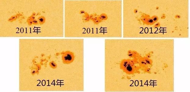 虽然一般来讲,太阳黑子主要出现太阳活动的高年,像本活动周的2011-2014年,就有太阳黑子的集中爆发。