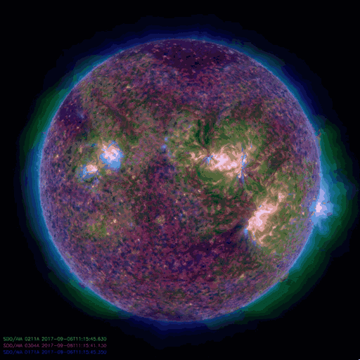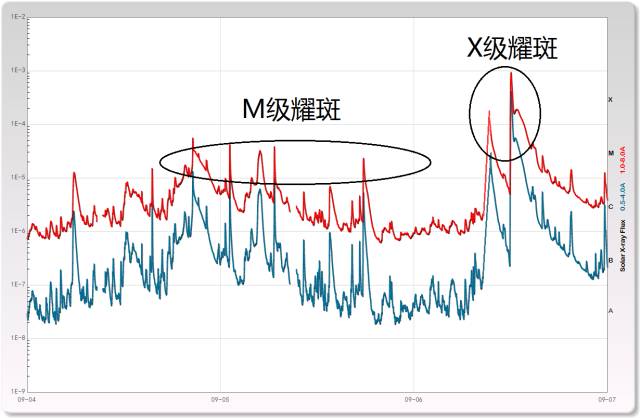 北京时间9月5日和6日的大耀斑伴随的日冕物质抛射都会到达地球,将在9月7-9日引起中等以上地磁暴。之后,将会陆续有高能电子暴、电离层暴等等。。。。。
