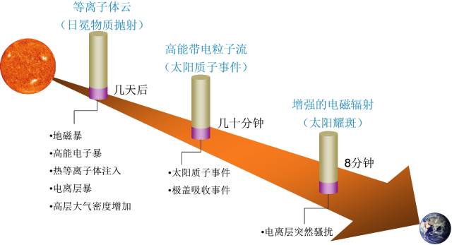 与太阳耀斑伴随的,是剧烈增强的电磁辐射、大量的高能带电粒子流、海量的等离子体云,这些都会给地球空间环境造成严重的威胁,就是我们常说的太阳风暴三轮大攻击,将带来一系列的空间天气灾害。