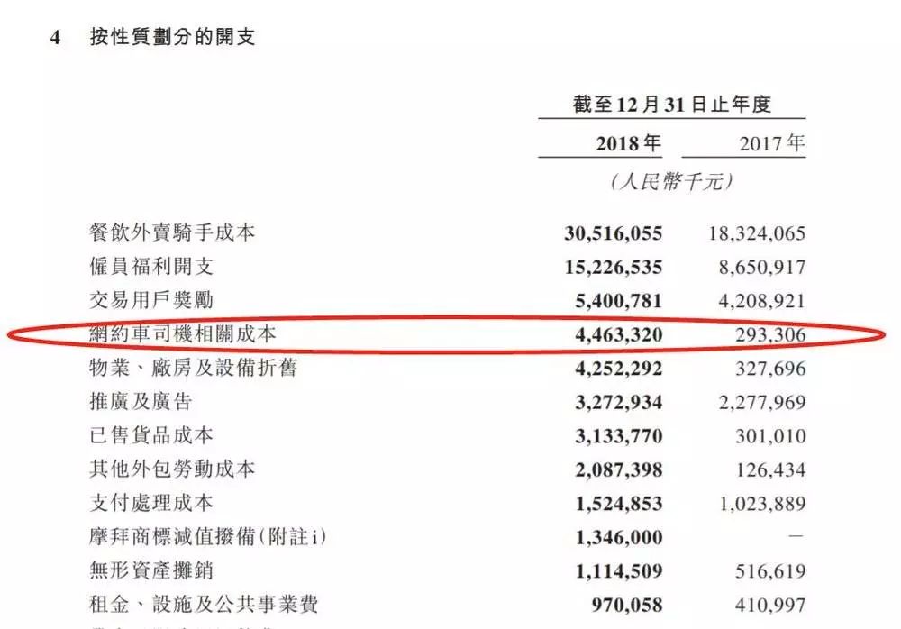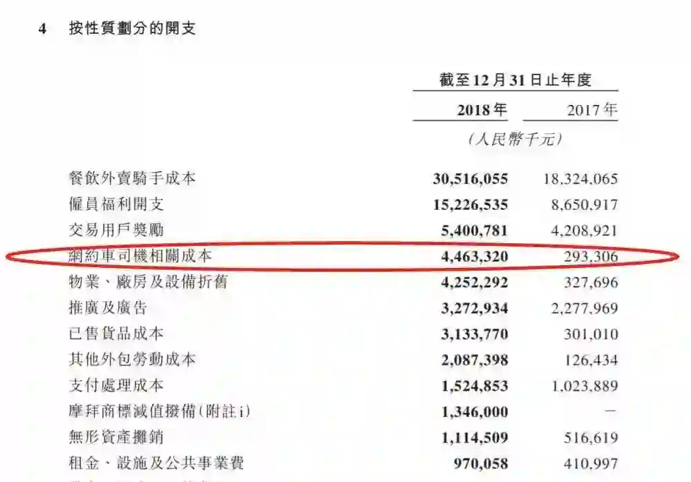 2018年的年报更是让外界得以一窥美团在网约车上的烧钱程度。2017年美团的网约车司机成本尚为2.9亿元,2018年则飙升至44.6亿元,这意味着美团2018年每月在网约车司机上的投入高达3.7亿元,已超过当时蓝鲸TMT所报道的数字,这还不包含美团打车对用户端的补贴。