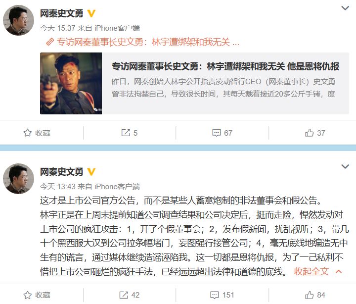 今天,史文勇又发微博回应这件事,称绑架事件和自己无关,并称林宇是造谣诬陷、恩将仇报。
