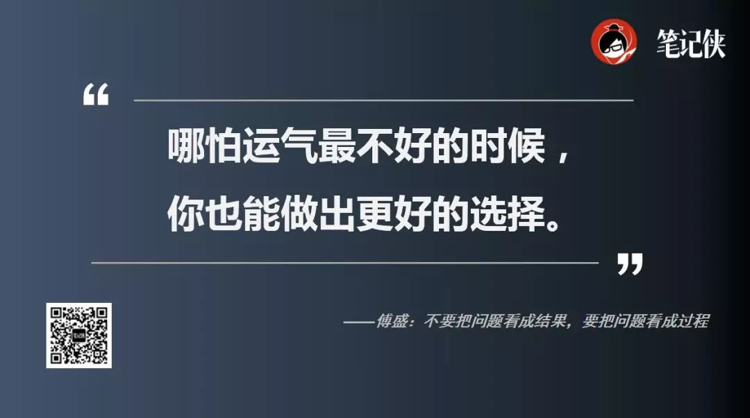 一旦出状况,就喜欢抱怨不公,运气不好。事实上,我们应该承担所有后果。因为,哪怕运气最不好的时候,你也能做出更好的选择。