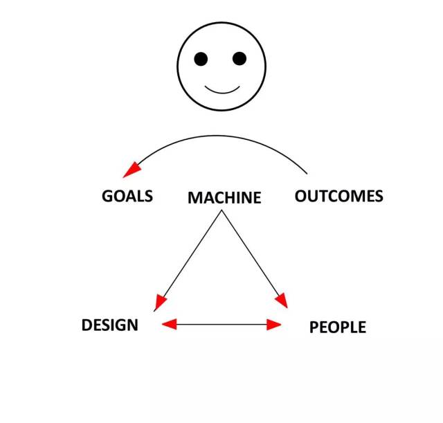 这是一个人自我进化的循环图。先有一个目标,通过machine训练后输出一个结果。而machine本身,在于人和设计。