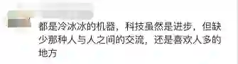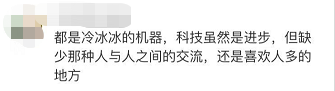 网友表示:住在这样一家酒店里,科技感是有了,但到处都是冷冰冰的机器人,似乎又少了点烟火气息。