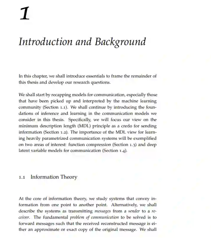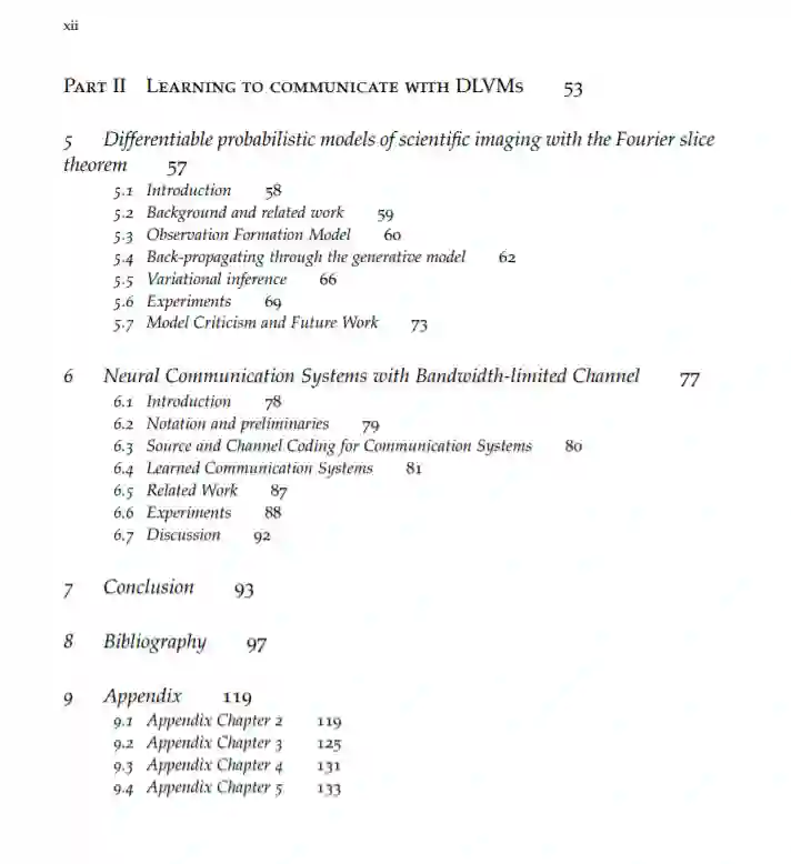 特别地,我们检查最小欺骗长度(MDL)原则作为统计推断的指南。在此背景下,我们探讨它与贝叶斯推理的关系。我们将看到,尽管两者都会导致类似的算法,但MDL原则允许我们对数据生成过程不做任何假设。我们只是把自己限制在从观测数据中寻找规律性,而规律性与压缩能力有关。因此,我们发现学习DLVM等价于最小化通信(压缩)一组观察数据的成本。一种常见的沟通方法是发送一个假设(或模型),随后数据与上述模型不匹配。这就是所谓的两部分码。在本论文中,我们将主要关注所谓的贝叶斯码——一种理论上比两部分码更有效的码。