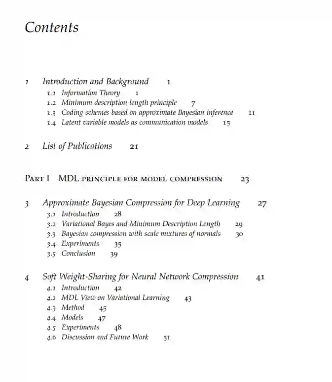 与直觉相反的是,贝叶斯推理方法允许我们在不知道编码或编码方案的情况下计算编码长度。本文的目的就是通过开发相应的编码方案来缩小这一差距。我们将在MDL原则的启发和指导下,寻找达到MDL所预测的代码长度的代码。特别关注的是可微函数,更准确地说,是通过大量高维数据学习的深度神经网络。我们将通过MDL原理来研究模型压缩和源压缩。