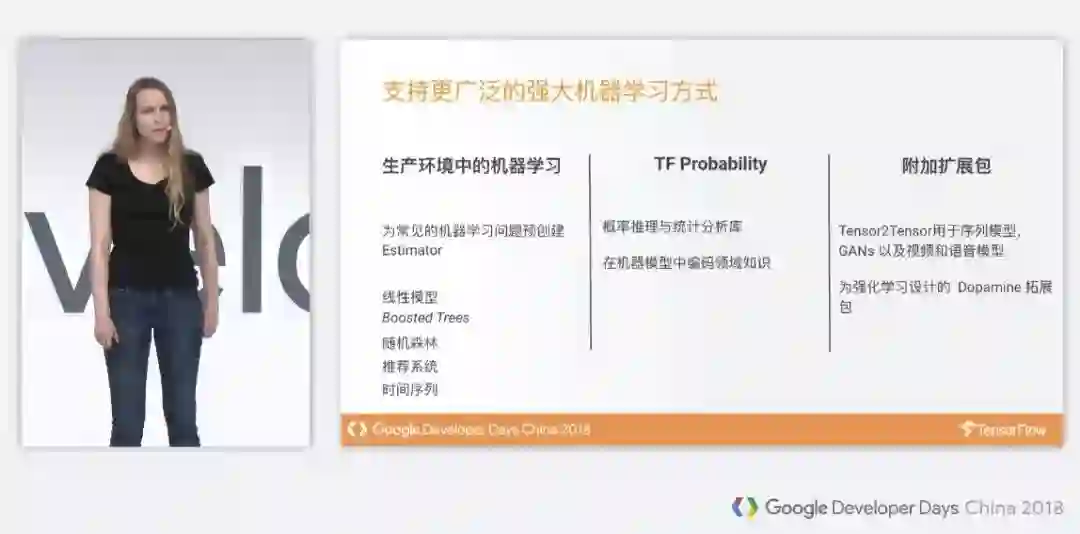 除了以上列举的主题演讲亮点之外,分会场专题演讲内容也是精彩频出。在大会的第二天,全天都在进行 TensorFlow专场的演讲。