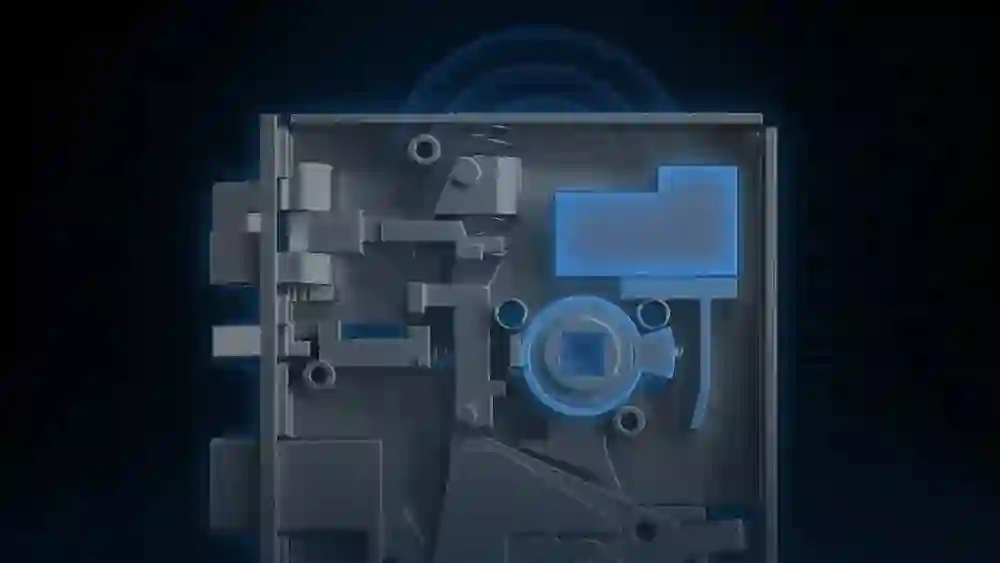 值得一提的是,米家推拉式智能门锁采用了机械自弹锁体,关门时触发上方的斜插锁舌自动落锁,锁舌会弹出,无需刻意操作。