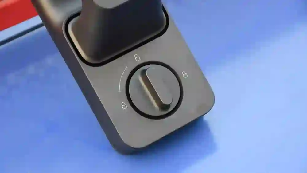 推拉板手内侧靠下的位置是一个旋钮,其功能是在旋转至水平方向以后可取下推拉板手外侧的保护盖,然后用卡针将面板下方的保护罩取下,再通过实体钥匙打开门锁,某种意义上讲也算是提升了实体钥匙孔的隐蔽性。