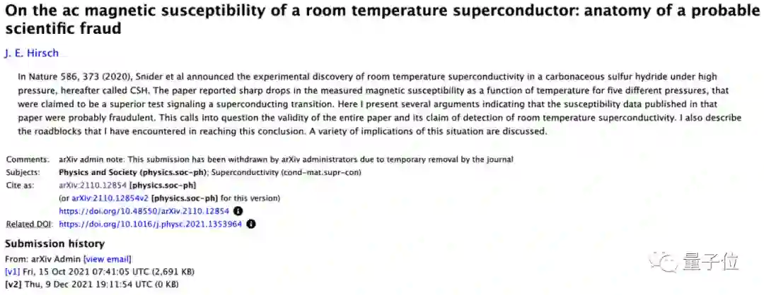 由于言辞过于激烈,题目直指室温超导体或是一场科学骗局,以至于arXiv、Physica C接连删除了相关文章,他也因此被arXiv禁言,今年2月起暂时无法发表文章。