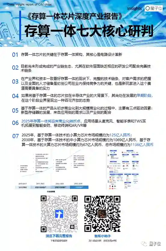 和数十家企业进行沟通交流并广泛调研后,量子位智库撰写了《存算一体芯片深度产业报告》,扫描下方二维码可下载完整报告。