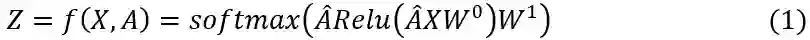 其中,X为每个节点的特征,图的结构信息以矩阵的形式加入到神经网络当中,