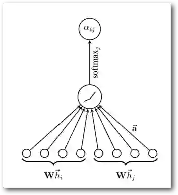 Semi-GCN邻居权重是固定的,且只与节点的度相关,GraphSAGE邻居权重固定是1。GAT利用Attention机制(公式3)学习邻居权重,利用multi-head机制增加稳定性。