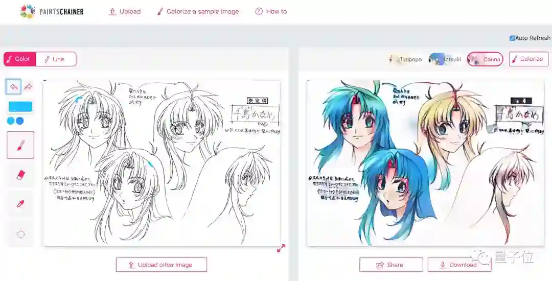 在漫画线稿上色AI这个领域,PaintsChainer的大名如雷贯耳,技术几乎可以算是标杆。你只需上传一张黑白线稿,点一个按钮,背后的AI自动为你生成一张彩色漫画。