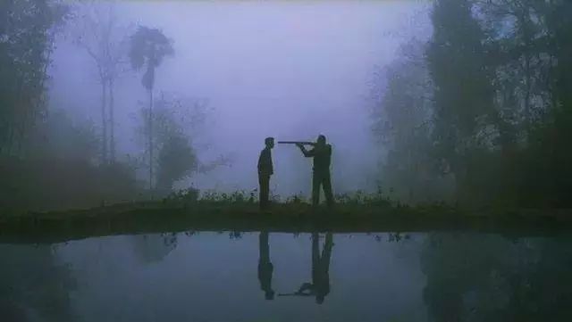 第三幕故事,则是李东方之死。姜文拍这部电影的初衷就是看叶弥小说《天鹅绒》时,被李东方之死触动。整幕故事枪声不断,姜文饰演的老唐胡子拉渣,带着一帮野孩子在树林里四处打猎,兔起鹘落,枪法干脆利落。日落西山,层林尽染,他们才归家。