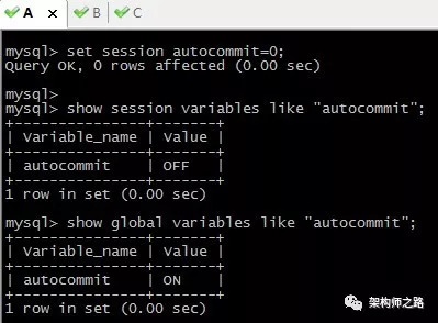 画外音:楼主使用的是MySQL5.6,官方客户端mysql,模拟并发终端用的SecureCRT。