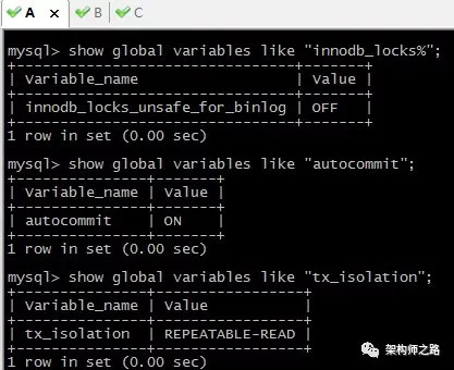 要测试InnoDB的锁互斥,以及死锁,有几个配置务必要提前确认: