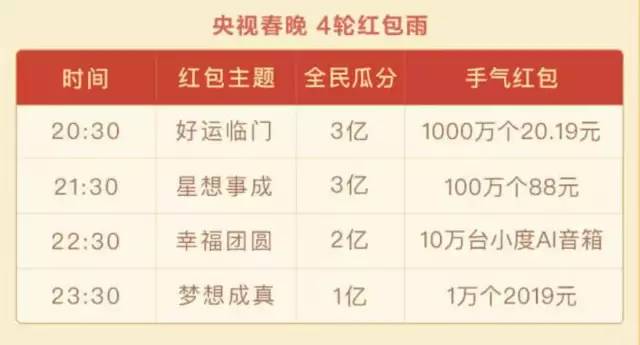 第三轮语音互动“幸福团圆”红包送出了10万台小度人工智能音箱及现金红包,共计2亿元。