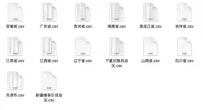 吉林省,四川省,天津市,宁夏回族自治区,安徽省,山西省,广东省,新疆维吾尔自治区,江苏省,江西省,海南省,贵州省,辽宁省,黑龙江省,