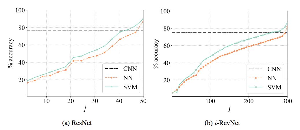 普遍认为,卷积神经网络的成功是基于对问题输入的无信息可变性的逐渐丢弃。在绝大多数常见的网络架构中,难以从图像的隐藏表征恢复图像,经验地支撑了上述观点。我们在这篇论文中证明了这种信息丢失不是泛化到复杂问题 (如 ImageNet ) 上的必要条件。通过使用级联同胚层,我们建立了 i-RevNet,这是一个可以完全倒转到类别的最终投影上的网络,也就是说,不会丢弃任何信息。建立一个可逆架构是很困难的,因为局部可逆是病态的,我们通过一种显式的逆向过程克服了这个问题。通过对 i-RevNet 学习到的表征的分析,我们提出了一种通过渐进收缩和按深度的线性分离来解释良好准确率的方法。为了揭示 i- RevNet 学习模型的性质,我们重构了自然图像表征之间的线性插值。