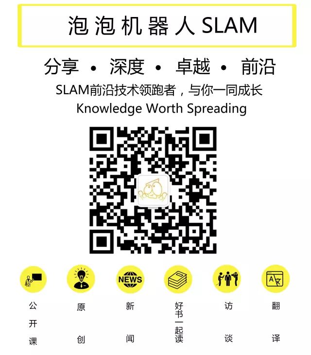 此次分享采用斗鱼直播,长按下图,识别图中二维码,关注“泡泡机器人SLAM”(ID:paopaorobot_slam)公众号,回复 "公开课" 获取直播链接,提前关注直播间,我们将在4月14日20:00开始直播,欢迎大家参加分享!