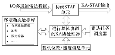 2)基于知识辅助的空时自适应处理(KA-space-time adaptive processing,KA-STAP)技术将专家系统的思想推广到多维滤波问题中。传统STAP的核心是一种基于样本协方差矩阵的技术,而KA-STAP研究将潜在信息资源的利用充分扩展到全部自适应处理过程中,提高雷达对环境的感知能力,如图9所示。
