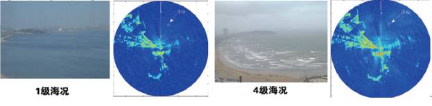 图1 不同海况条件下雷达P 显画面