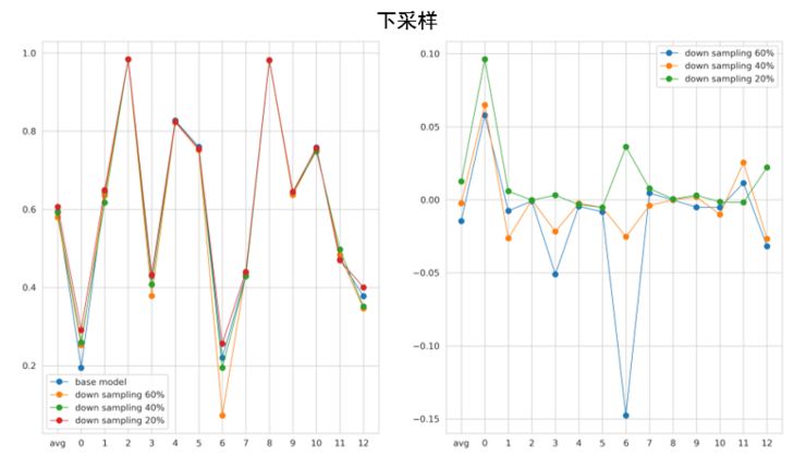 下采样过程中随机对样本进行删除,分别测试了 20%,40% 和 60% 的下采样,可以看到 20% 的时候效果最好。