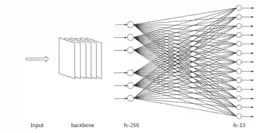 采用多种不同的 Backbone,包括 ResNet、Inception、Xception 等,后接两个 FC 层,分别为 256、13 个神经元(多隐层提升并不大),两层之间使用 BN,使用 Cross-Entropy Loss、Focal Loss 进行模型的训练。这种结构相当于构建了 Multi-task 学习,比起每个标签单独训练模型而言,速度更快,且精度更高。