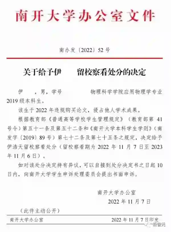而此前,伊同学已经取得了北大物院的直博生保送资格。南开大学给出的文件中,并未明确写明伊某的保送资格是否取消。